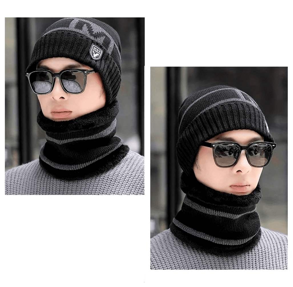 Kapica, ki jo je enostavno nositi na obrazu, prav tako vsebuje toplo krzno znotraj in dve sivi vzdolžni črti na zunanji strani. Ta komplet ni le praktičen za vsakodnevno nošenje v službo ali šolo, temveč tudi stilščni kos, ki ga lahko nosite skupaj ali ločeno. Zimski komplet združuje udobje in moderen videz, zato je idealno darilo za vsakega moškega.