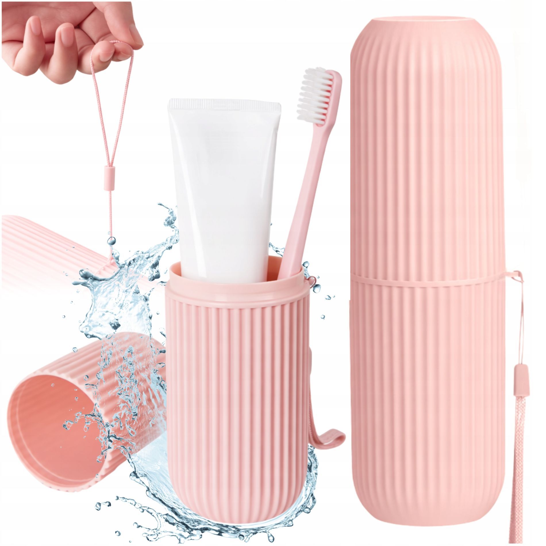 Praktičen potovalni etui za zobno ščetko in zobno past v nežno rožnati barvi je idealna rešitev za higienično shranjevanje ustne nege doma in na poti. Izdelan je iz lahke in trpežne plastike, ki ščiti vsebino pred umazanijo, vlago in poškodbami v kozmetični torbici, nahrbtniku ali kovčku. Zapiralna, dvodelna zasnova omogoča, da etui uporabljate tudi kot lonček za izpiranje ust, zato je še posebej uporaben na potovanjih, v službi, šoli, na treningih ali v kampu. Za lažje prenašanje in shranjevanje ima priročen ročaj oziroma trak, ki omogoča tudi obešanje. Enoprostorni notranji del je primeren za standardno zobno ščetko in tubo paste, etui pa je enostaven za čiščenje in primeren za vsakodnevno uporabo. Estetski videz in kompaktne mere poskrbijo, da zavzame minimalno prostora, hkrati pa ohranja vašo opremo urejeno in zaščiteno. Dimenzije: širina 5,5 cm, višina 19,5 cm, dolžina traku 14,5 cm. Barva: roza. Material: plastika. Kapaciteta: 250 ml. Dodatne lastnosti: pokrov, ročaj/trak za obešanje, dekorativni vzorec. Znamka: Korbi. EAN: 5906448710653.