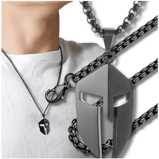 Odkrijte izjemen moški ogrlico s pendantom v obliki spartanške čelade, ki simbolizira moč, pogum in neomajnost. Narejena iz odporne kirurške jekla, ta črna ogrlica ni le modni dodatek, ampak tudi praktičen kos, ki odporno zoper korozijo in ohranja eleganten videz. S dolžino 60 cm in sponko na kljuko se udobno nosi in odlično dopolni tako vsakdanjo kot formalno obleko.