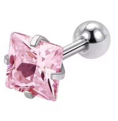 Jekleni piercing uhani z rožnatim kristalom Square Celoten opis