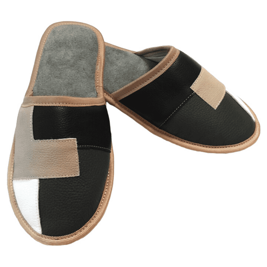 Copa cop Usnjeni hišni copati Puzzle - Črn, 39.5