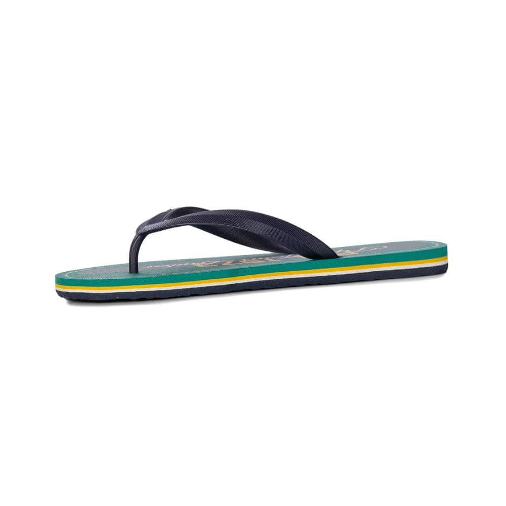 Te zelene moške japonke Pepe Jeans iz kolekcije pomlad-poletje 2025 so udobna in praktična izbira za tople dni. Izdelane so v celoti iz visokokakovostnega materiala, zato zagotavljajo odpornost na vlago, hitro sušenje in enostavno čiščenje – popolne so za plažo, bazen ali vsakodnevno uporabo. Mehak vložek in fleksibilen 1,5 cm širok podplat zagotavljata udobje in učinkovito blaženje. Klasična oblika s paščkom med prsti, odprtim okroglim prstom in ravno peto združuje udobje z brezčasnim slogom. Japonke Pepe Jeans so odličen dodatek k vsaki poletni obleki, saj zagotavljajo lahkotnost in svobodo gibanja. To so popolne moške japonke za aktivne moške, ki cenijo stil in funkcionalnost.