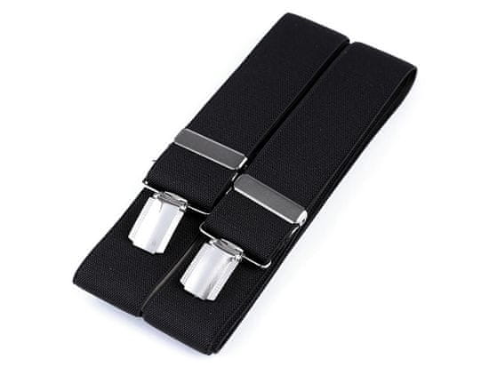 Enobarvne naramnice so visokokakovostne češke izdelave. Elastičen material omogoča udobno nošenje. Zadnji vložek iz eko usnja jim daje eleganten videz. Na hlače se zapenjajo s tremi poklopci – dvema spredaj in enim zadaj.
