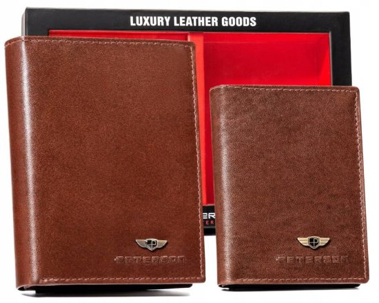 Peterson Darilni set: moška usnjena denarnica, etui za kartice in obesek za ključe