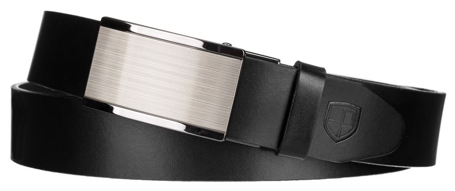 Moški usnjen pas z minimalistično samodejno zaponko PetersonPoljska znamka | Izdelek znane in cenjene poljske znamke, ki ji zaupa na tisoče kupcev. Na traku je vtisnjen logotip proizvajalcaVisoka kakovost | Iz naravnega zrnatega usnja v temno črni barviPas z avtomatsko zaponko | Zaključek s srebrno Celoten opis