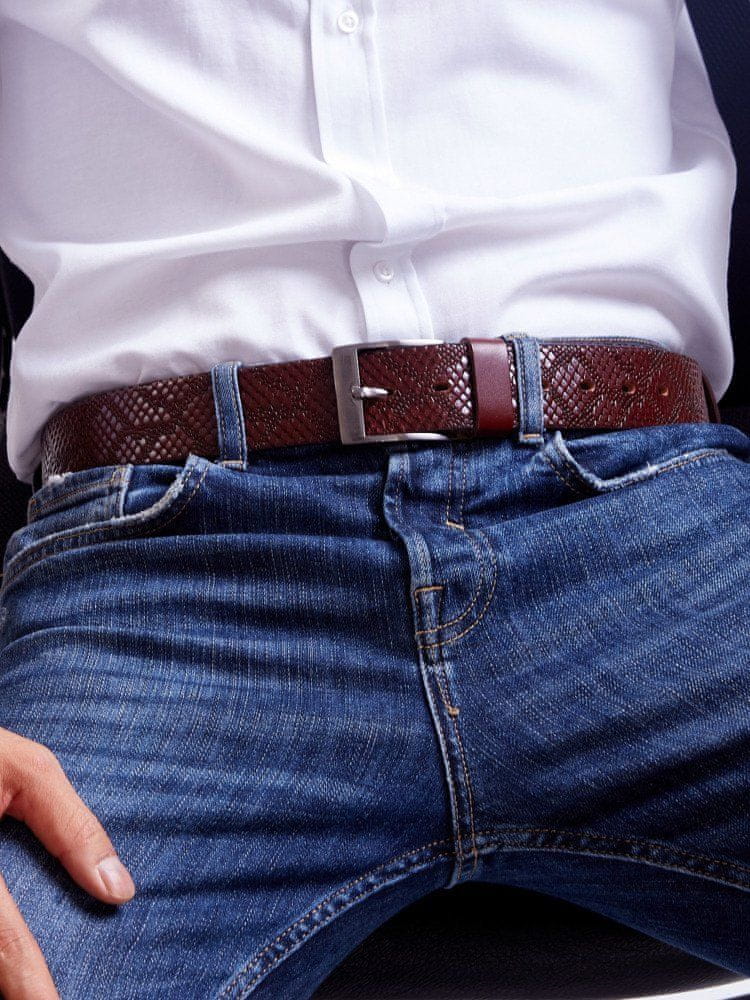 Rovicky Klasičen pas iz naravnega usnja, okrašen z reliefom kačje kože