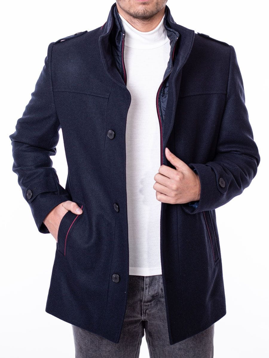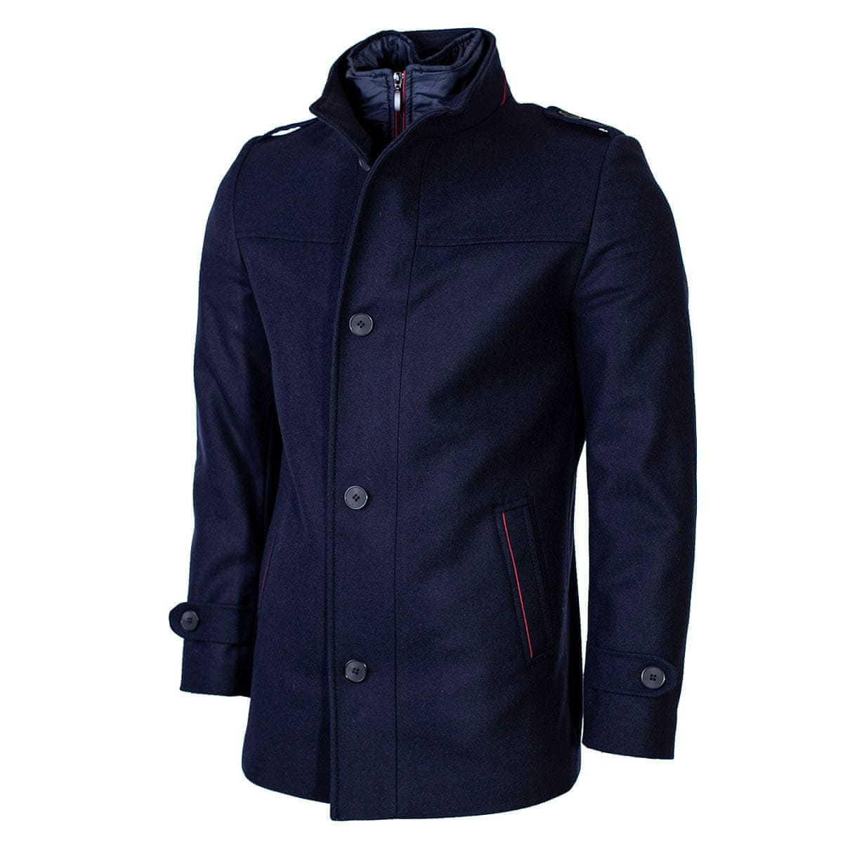 Moški volneni plašč z mešanico kašmirja Raimond, mornarsko rdeče obrobe M Celoten opis