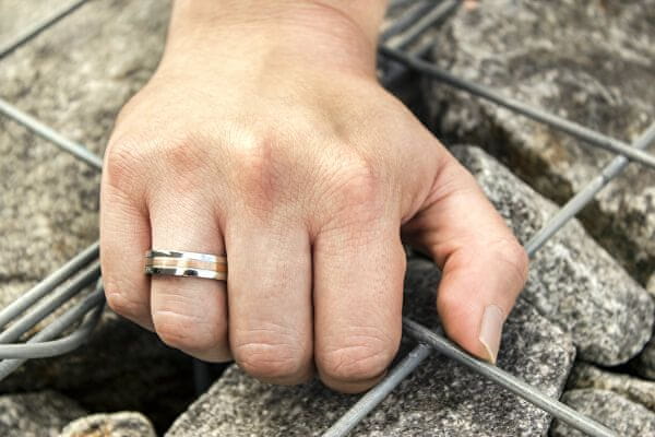 Bikolor poročni prstan iz jekla SPP10. Celoten opis