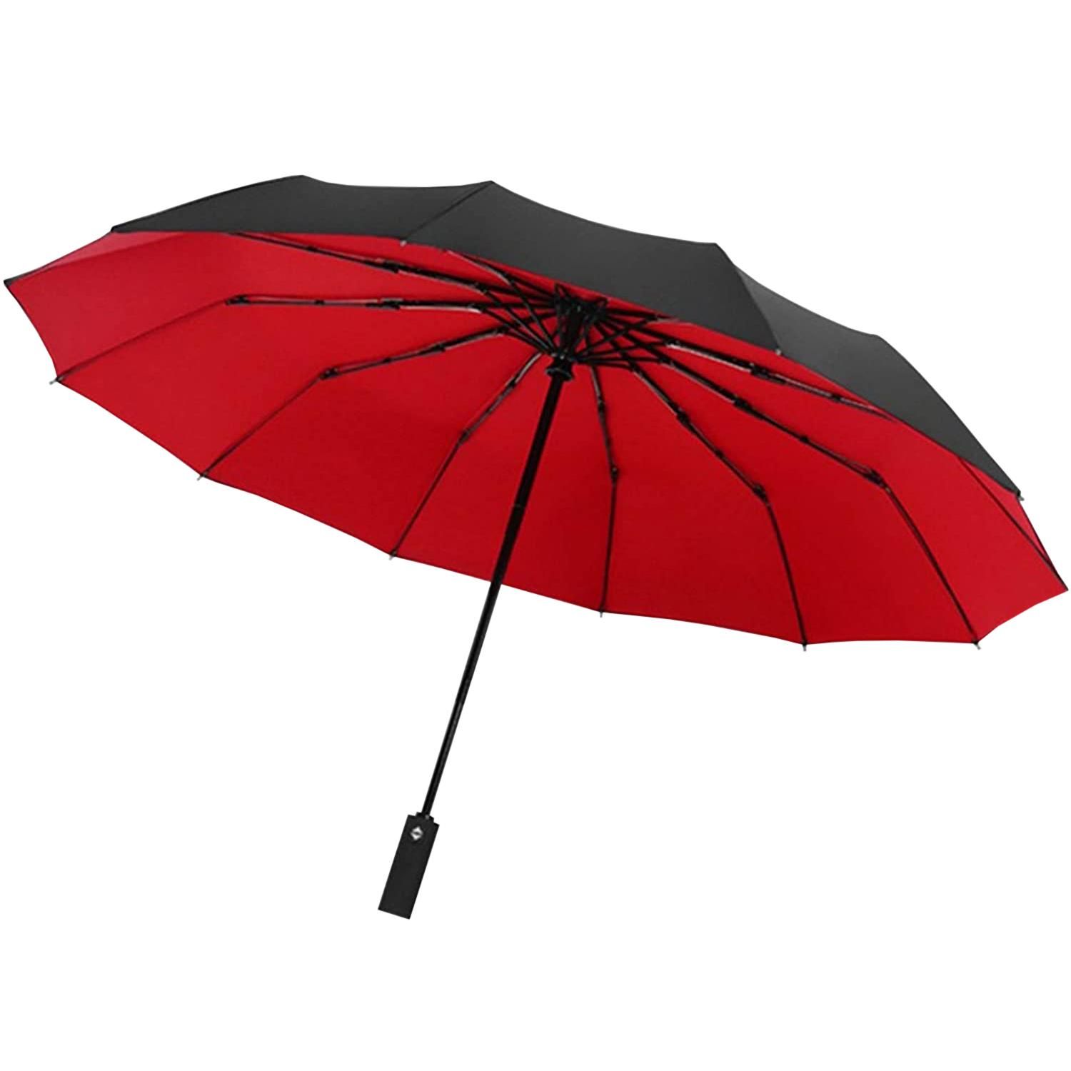 Northix Dežnik, kompakten - 105 cm - črn/rdeč