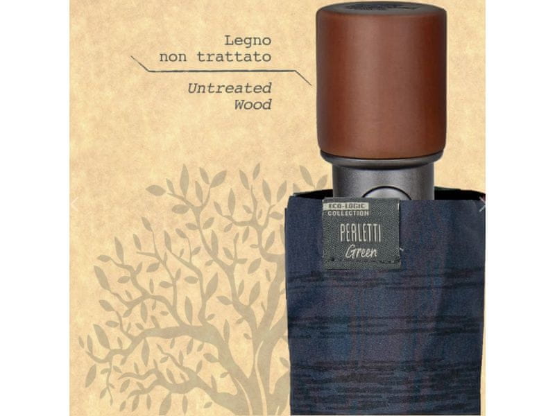Kolekcija Perletti Green prinaša elegantne moške dodatke s poudarkom na ekologiji in slogu. Zaradi samodejnega odpiranja, priročnega prenašanja in kompaktnih dimenzij je ta dežnik idealen spremljevalec za vsakodnevne situacije.