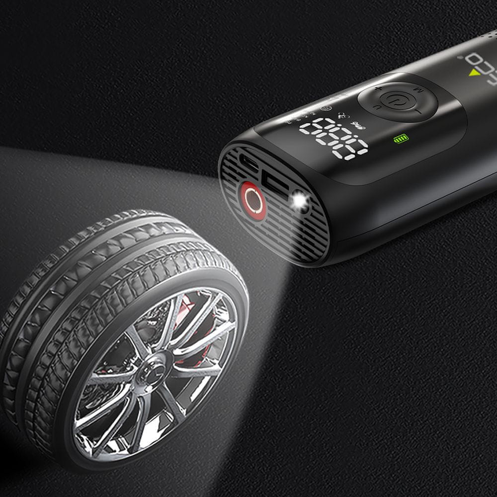 ECO AP‑500 je vaša nepogrešljiva prenosna tlačilka za napihovanje gum, športnih žog in zunanje opreme — doma, na cesti ali v naravi. Z zmogljivo baterijo 5000mAh zagotavlja do 150 PSI in 24 L/min pretoka zraka, kar omogoča napihovanje avtomobilskih gum, kolesarskih gum, blazin in druge opreme v nekaj minutah. Vgrajeni digitalni zaslon omogoča nastavitev želene vrednosti in samodejno zaustavitev, ko je tlak dosežen, zato ni skrbi glede prekomernega napihovanja.