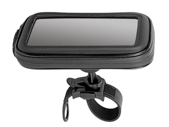 Večnamenski nosilec za telefon, dlančnik, navigacijo. Hitra pritrditev s posebno objemko s ključavnicami, primerno za premere krmila 20–48 mm. Vodoodporen, primeren za pametne telefone in navigacijske sisteme. Prosojen zgornji del z vodoodporno zadrgo in luknjo za polnjenje.