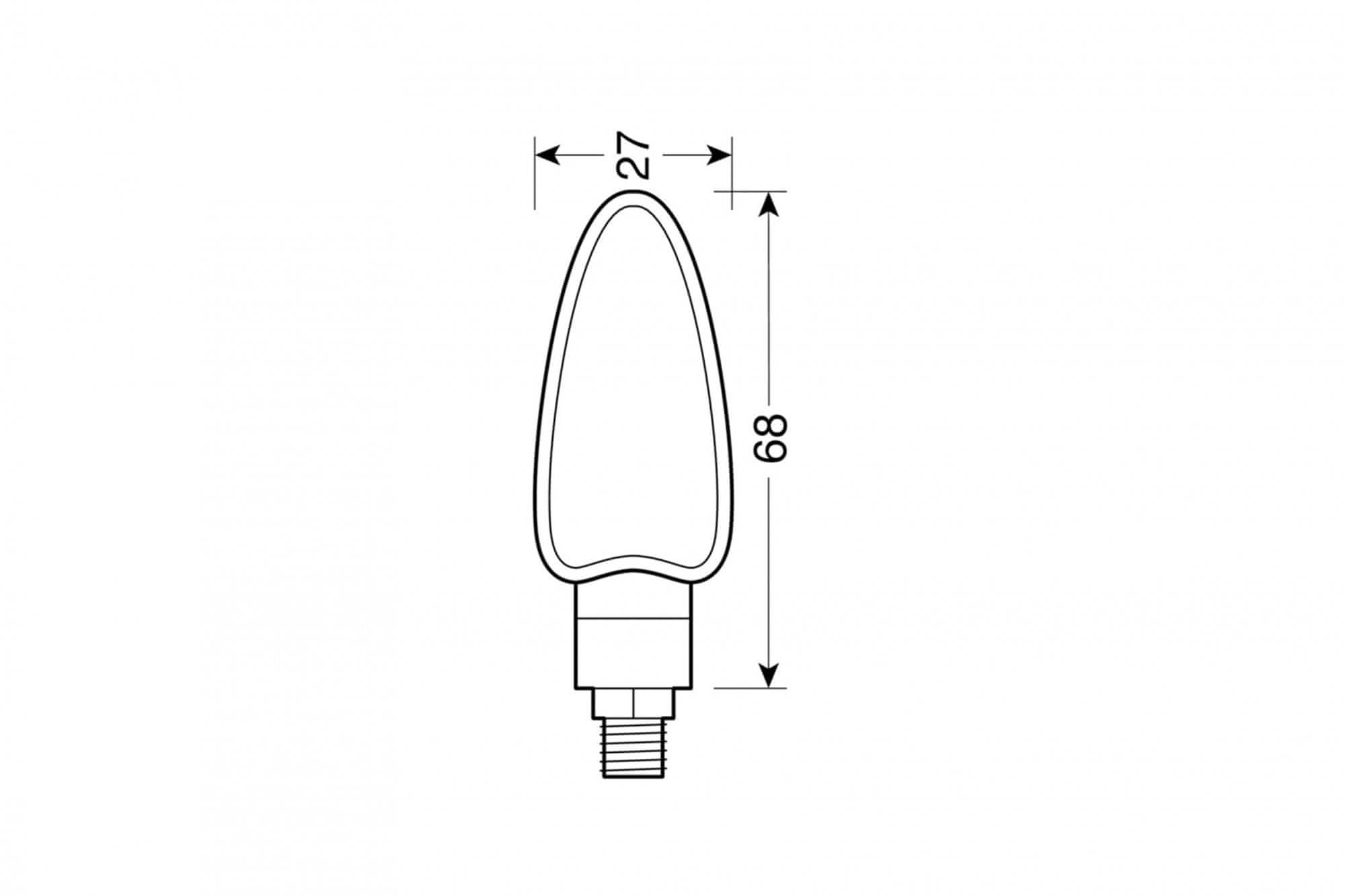 Smerniki za motorno kolo ARROW, komplet dveh. Kabli s hitrimi priključki. Skupne mere 68×27 mm. Različica LED 12V. Material plastika, barva črna. Pritrditev – vijak v gumijastem ležišču, odporen na udarce. Homologacija E.