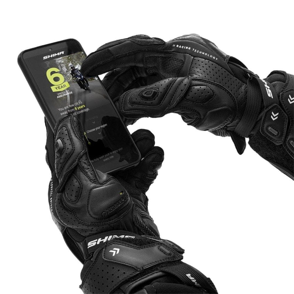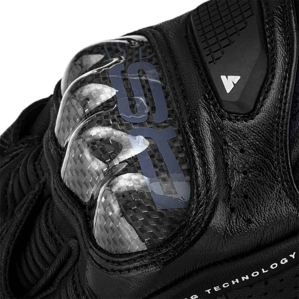 Motociklistične rokavice SHIMA RS-3 so popolna mešanica zaščite, udobja in tehnologije, zasnovane z mislijo na najzahtevnejše motoriste. Izdelane so iz trpežnega kozjega usnja in izjemno trpežnega ter prožnega kengurujevega usnja na dlani ter zagotavljajo visoko raven varnosti zahvaljujoč naprednim zaščitnim funkcijam, kot so drsnik SAP na dlani, trda zaščita členkov z ojačitvijo iz karbona, mini drsnik pod mezincem in premostitveni členek prsta, ki pomaga zapreti roko v primeru stika s tlemi.
