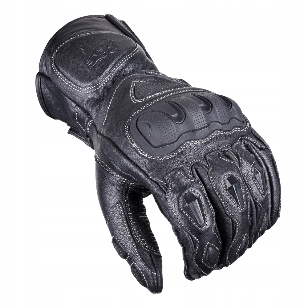 shumee UDOBNE MOČNE USNJENE MOTOCIKLERSKE ROKAVICE WOLF ČRNE M