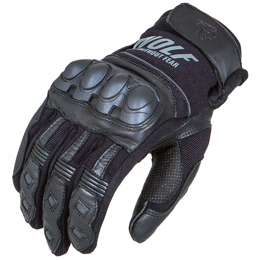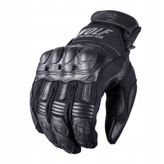 shumee UDOBNE USNJENE ROKAVICE WOLF Z ZAŠČITNIMI DELKI ČRNE 2XL