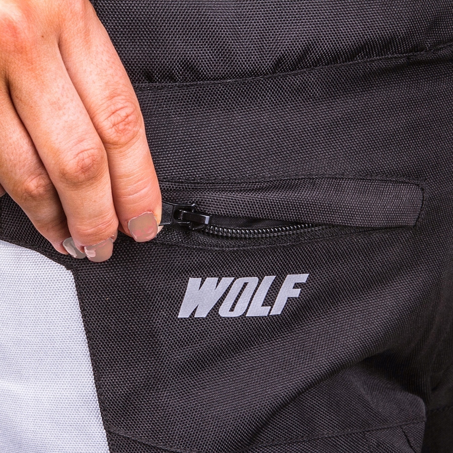 Ponosni in veseli smo, da predstavljamo tretjo – in spet smo jo oblikovali v sodelovanju z motoristkami z vse države – različico varnega in udobnega modela ženskih tekstilnih hlač Wolf Black&White.