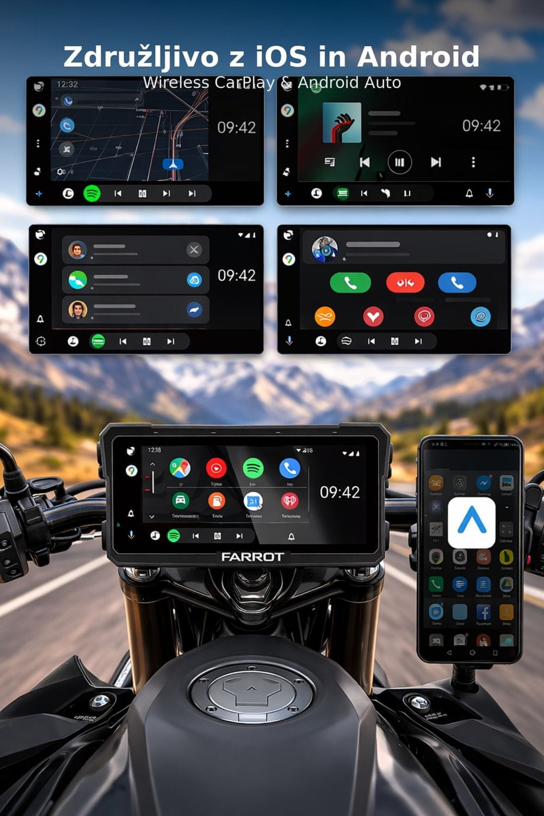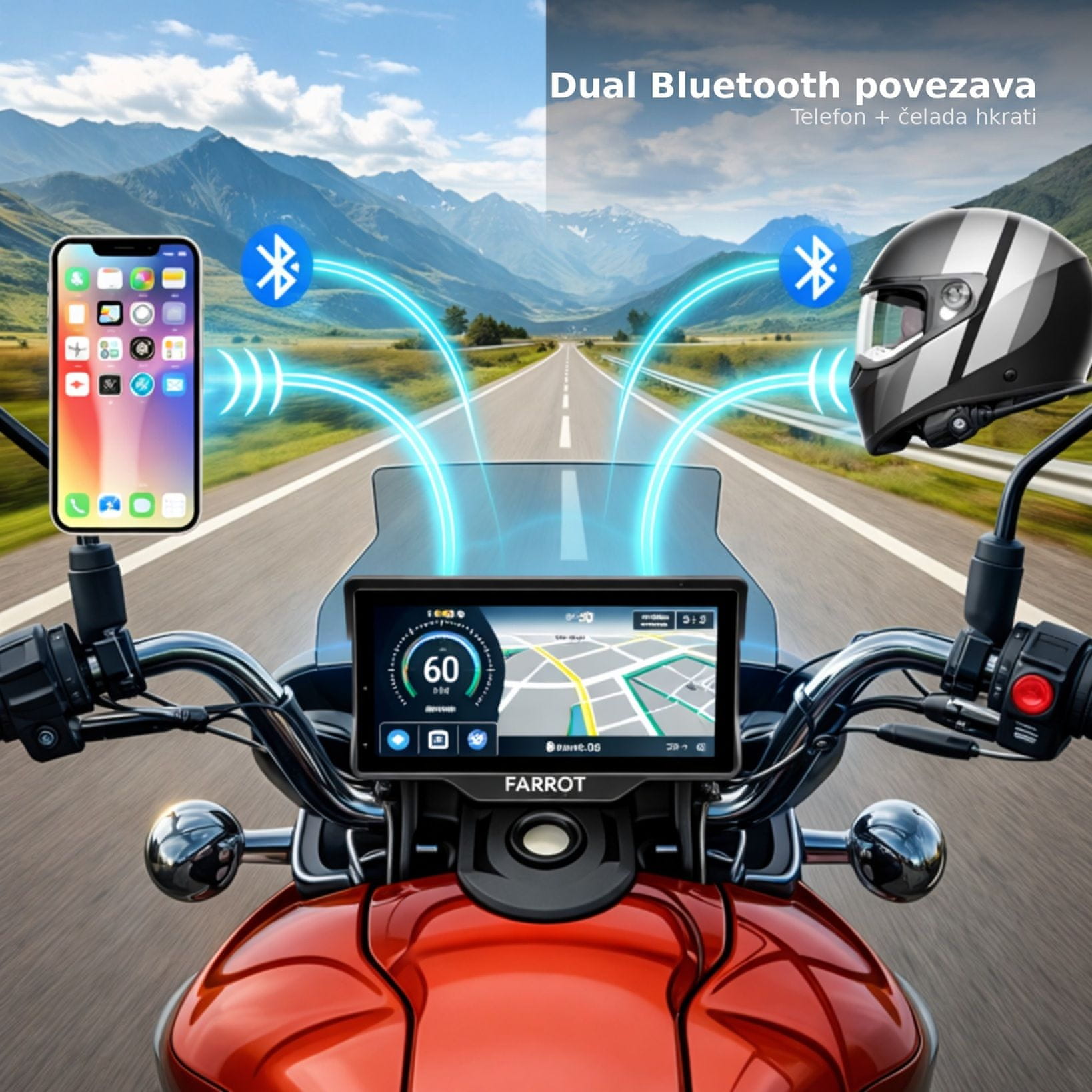 Farrot M770 7” Moto Navigacija z Wireless CarPlay & Android Auto, Dual Bluetooth, IPX8 Vodoodporna