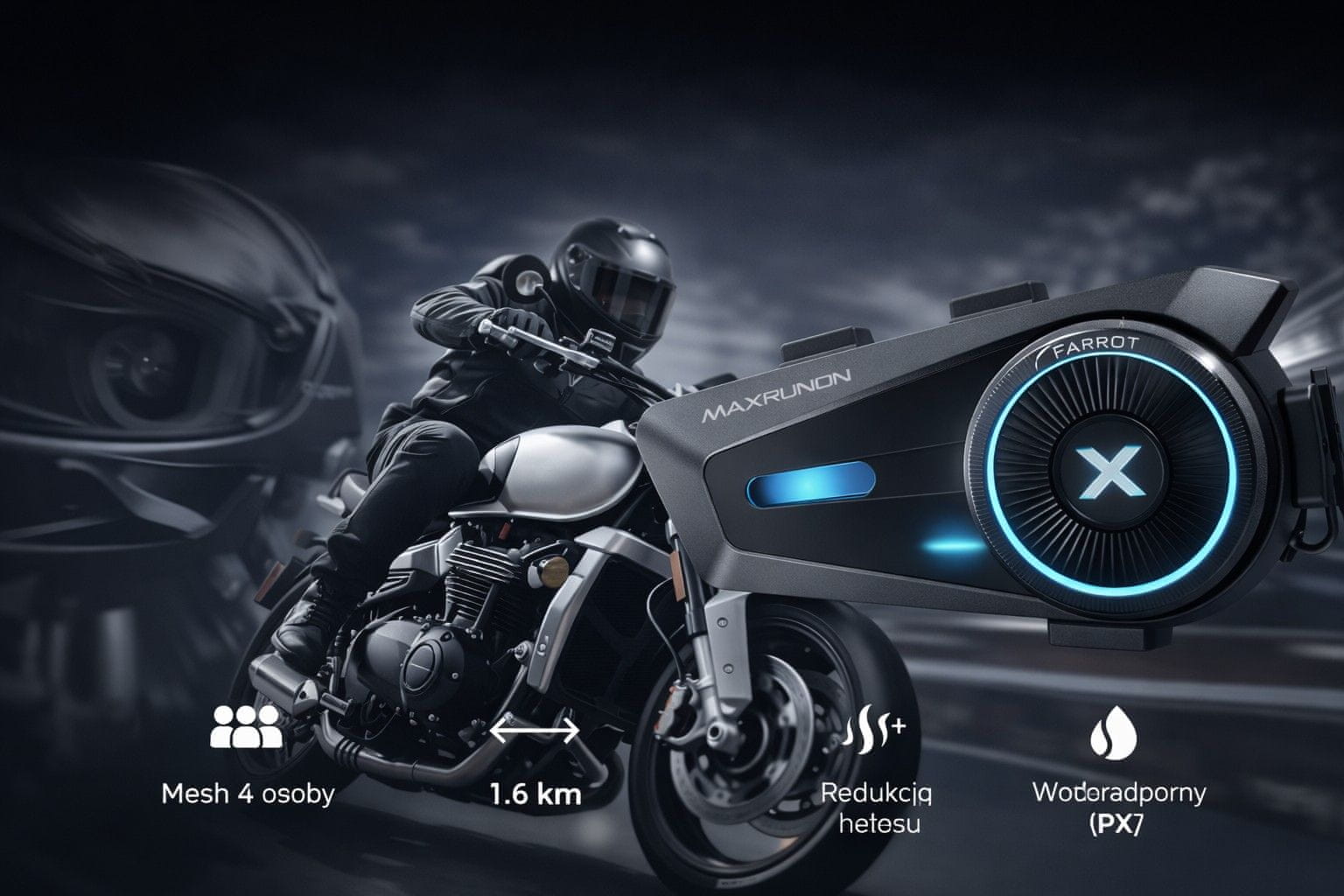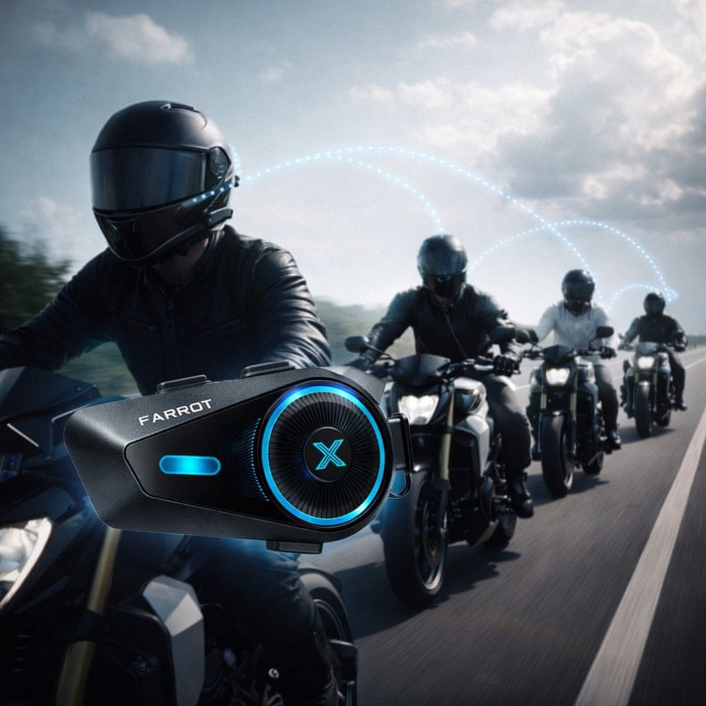 FARROT Rider D10 je napreden motoristični interkom za komunikacijo med več uporabniki z uporabo Mesh tehnologije.