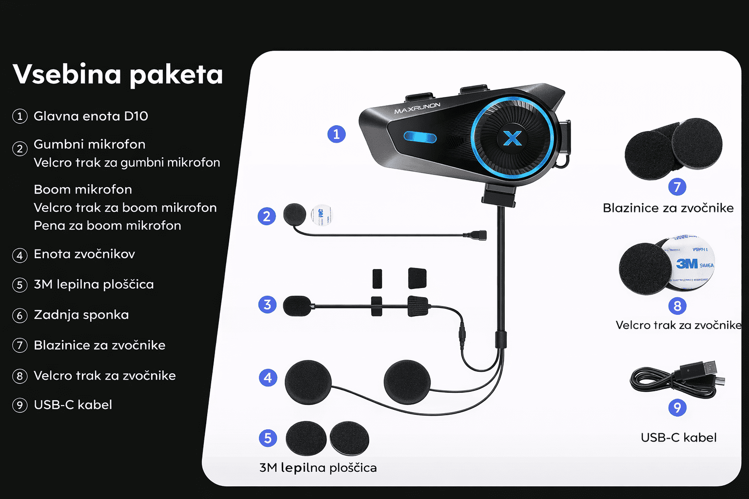 ✔️ 2 × slušalke (zvočniki + mikrofon)