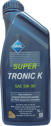Vrhunsko sintetično olje za visoko zmogljive bencinske in dizelske motorje nemških proizvajalcev: VW (tudi Škoda in SEAT), Audi, Mercedes, BMW, predvideno za podaljšan servisni interval. Aral Super Tronic izpolnjuje najvišje zahteve za zaščito pred obrabo gibljivih delov in podaljšuje življenjsko dobo filtra trdih delcev.