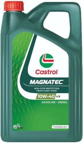 Olje Castrol Magnatec 10W-40 uporablja edinstveno Castrolovo tehnologijo ‚inteligentnih molekul‘, ki se aktivirajo na površini delov v motorju dlje kot konvencionalna olja, s čimer se zmanjšuje obraba vitalnih delov in ohranja daljša življenjska doba motorja. Testirano in odobreno s strani evropske (ACEA) in ameriške (API) ustanove za urejanje specifikacij motornih olj. Castrol Magnatec 10W-40 se priporoča za uporabo v bencinskih in dizelskih motorjih osebnih vozil vključno v motorjih s turbopolnilniki in intercoolerji, kjer proizvajalec zahteva uporabo olja po specifikacijah ACEA A3/B3 ali API SL/CF 10W-40. Ustreza tudi specifikacijam Mercedes Benz in Volkswagen. |
