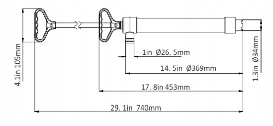• Na voljo z dvema dolžinama cevi: 369 mm (14,5″) ali 629 mm (24,8")
