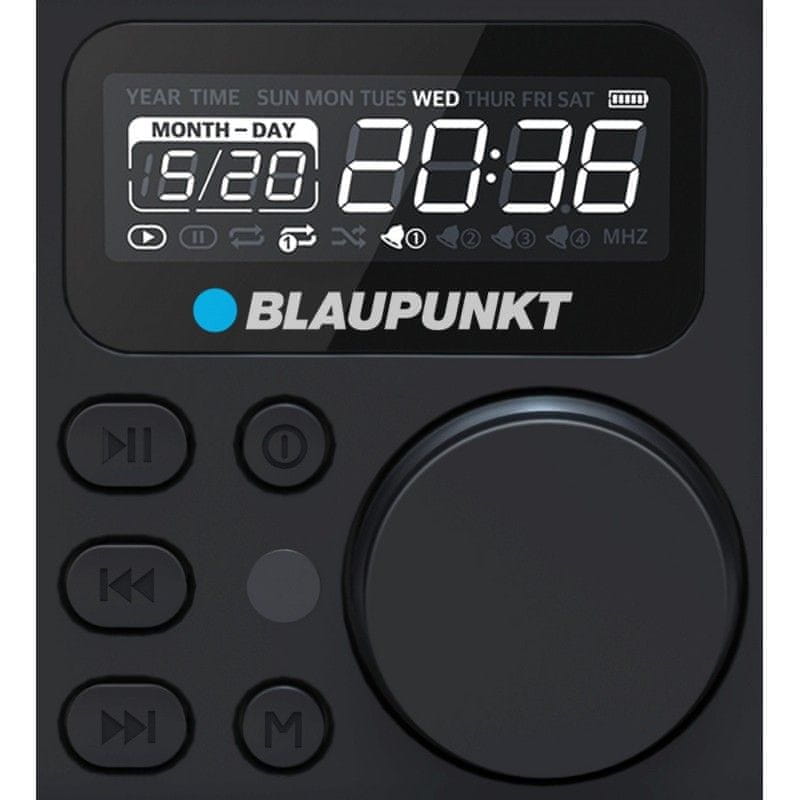 Hišni radio Blaupunkt HR5BR je majhen elektronski dodatek, ki se bo prilegal vaši kuhinji, pisarni ali sobi. Omogoča vam poslušanje in shranjevanje do 50 priljubljenih radijskih postaj, poleg tega pa lahko prisluhnete tudi priljubljenim avdio datotekam, shranjenim na microSD kartici ali USB ključku. AUX vhod omogoča povezovanje drugih avdio virov. HR5BR lahko uporabljate tudi kot radio uro, upravljate pa ga lahko kar z daljinskim upravljalnikom.