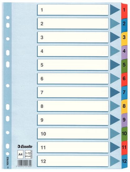 Esselte kartonski razdelilnik A4 Mylar, indeksiran 1–12 /12 kartic/ 100162 Celoten opis