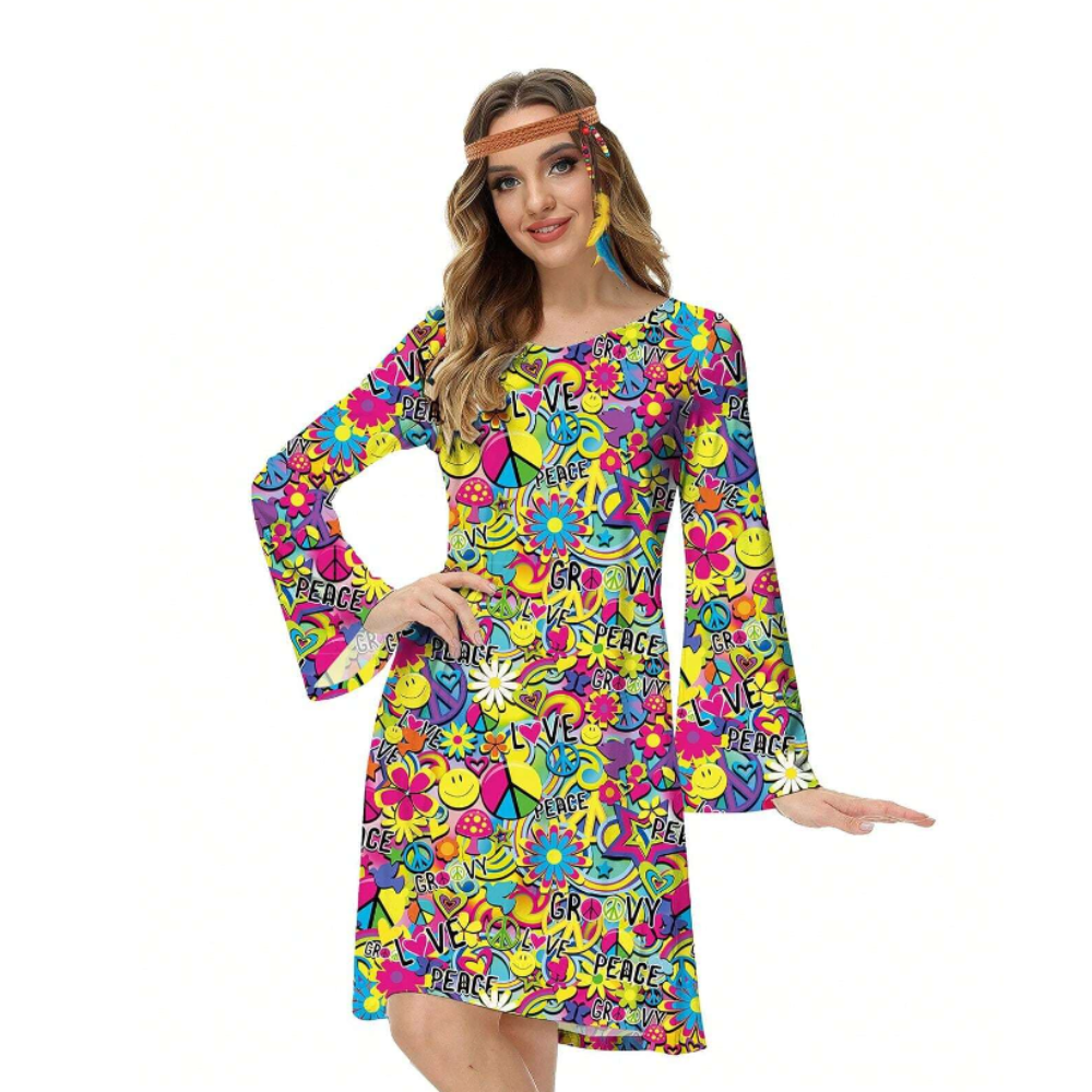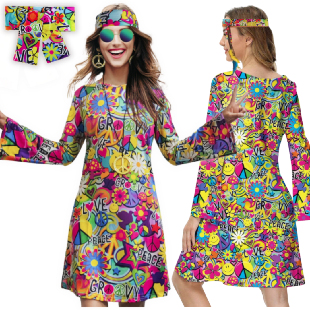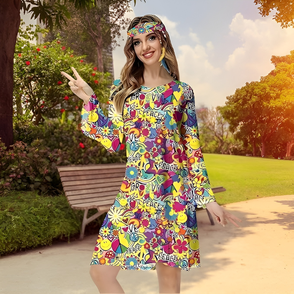 Potopite se v pisano vzdušje 60-ih in 70-ih . zahvaljujoč obleki v hipi slogu! To je predlog za ljudi, ki želijo izstopati s svojim edinstvenim slogom in na vsako zabavo vnesti pozitivno energijo. Prepoznavni vzorci in živahne barve vas bodo zlahka popeljale v vzdušje obdobja svobode in ljubezni.