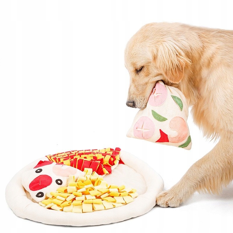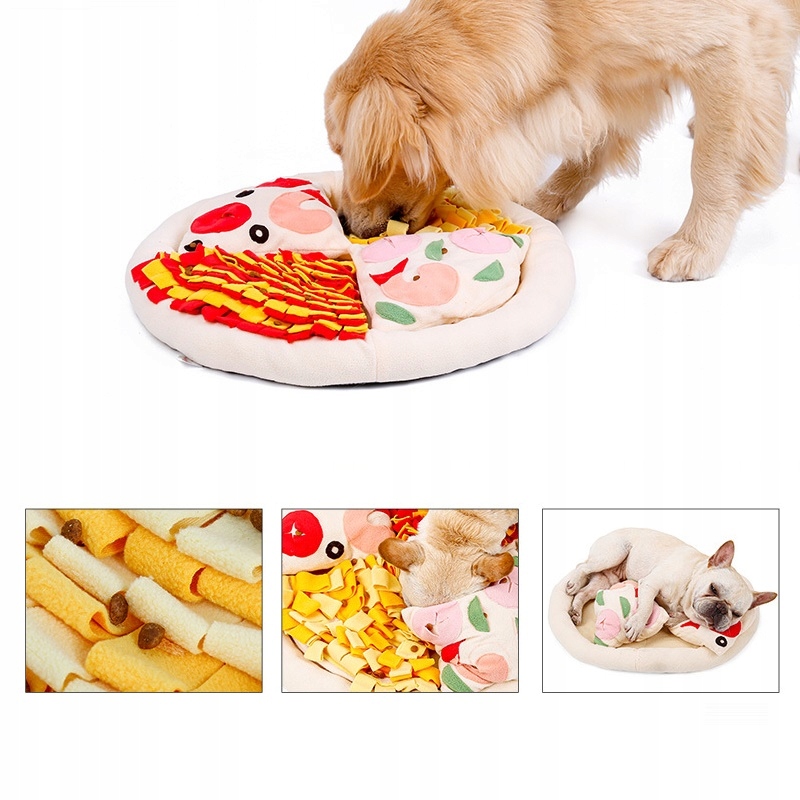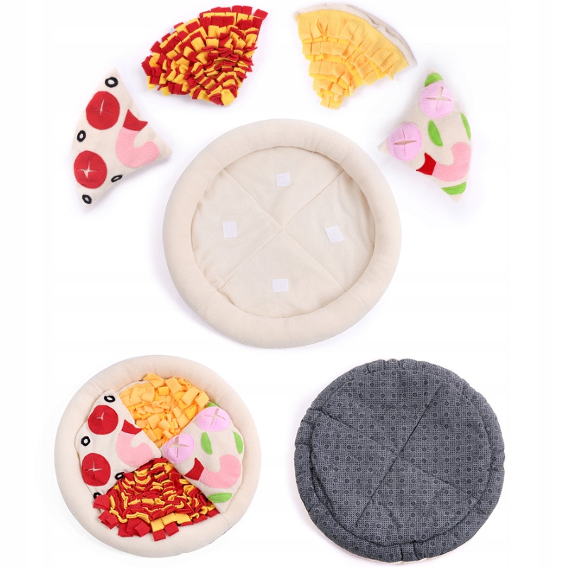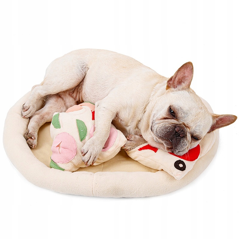 Odlična igrača s široko paleto uporab. Dva kosa pice, ki lahko držita hrano in priboljške, naučita vašega psa potrpežljivosti, počasnega prehranjevanja in dolgega iskanja priboljškov. Uporablja se lahko tudi kot igrača, ki jo bo moral vaš pes po igri pospraviti. Tretja uporaba je kot ležišče za manjše pse ali druge živali.