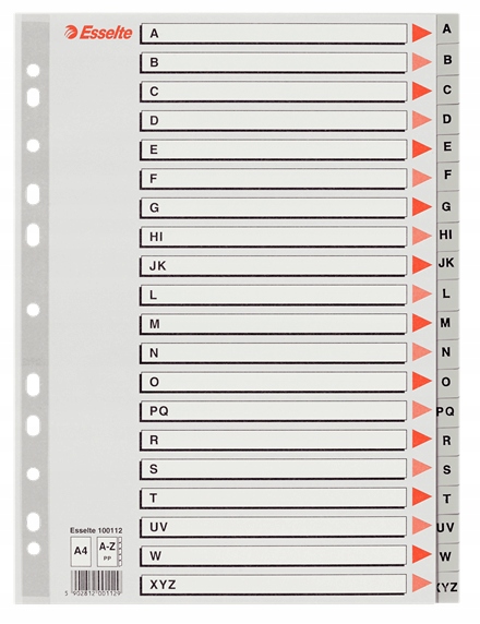 PP A4 Esselte razdelilnik Indexed AZ /20 kartic/ 100112 Celoten opis