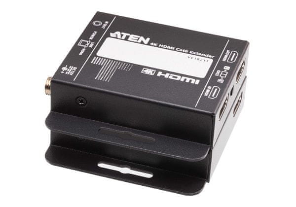 VE1821 kot celovita rešitev je na voljo v kompletu, ki vključuje oddajnik in sprejemnik, ki prek kabla Cat 6 (priporočljivo ATEN 2L-2910) razširja signale HDMI do 4096 × 2160 / 3840 × 2160 @ 30 Hz (4 : 4) na razdalji do 40 m. Kristalno čista predstavitev videoposnetkov je zagotovljena zaradi možnosti prenosa virov 4K brez zakasnitev. Medtem podpira zvočne formate brez izgub, kot so LPCM 7.1CH, Dolby TrueHD, Dolby Digital Plus in DTS-HD Master Audio, ki video vsebini dodajo vrhunski zvok in izboljšajo izkušnjo gledalca.