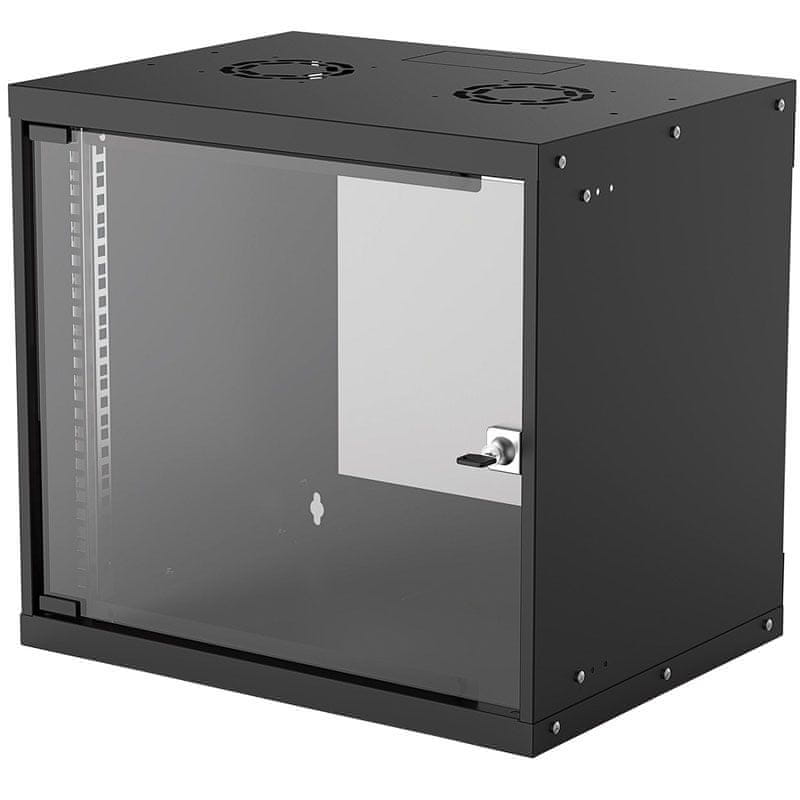 INTELLINET Basic 19'' zidna komunikacijska omara pomeni cenovno ugodno in učinkovito rešitev za namestitev vaše mrežne opreme. Ocena IP20 je dosežena s hladno valjanim, pocinkanim jeklom in reverzibilnimi vrati iz kaljenega stekla, ki omogočajo enostaven dostop v omejenih prostorih.