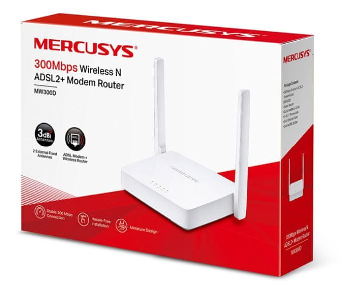 Mercusys MW300D modem ADSL2+ z brezžičnim usmerjevalnikom, 300 Mb/s