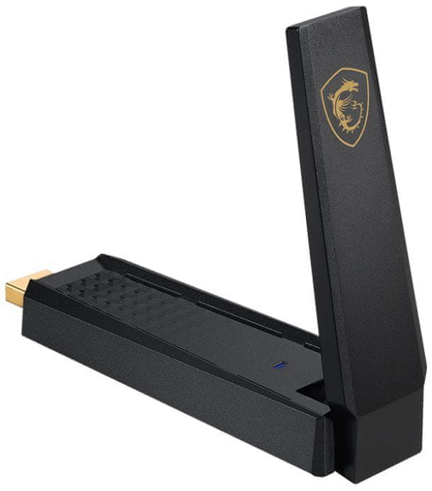 Kompaktni adapter Wi-Fi USB omogoča skoraj takojšnjo nadgradnjo vašega namiznega ali prenosnega računalnika. S podporo Wi-Fi 6E zagotavlja hitrosti prenosa do 2402 Mb/s v pasu 6 GHz, 2402 Mb/s v pasu 5 GHz in 574 Mb/s v pasu 2,4 GHz. Zaradi večje pasovne širine je idealen za visoko zmogljive aplikacije in gnečasta omrežna okolja. Nagibna antena z visokim izkoristkom skupaj s tehnologijo Beamforming zagotavlja najboljšo pokritost s signalom za nemoteno in stabilno povezavo. Poleg tega lahko adapter s funkcijo MSI FIRST učinkovito zmanjša zakasnitve pri sodelovanju z usmerjevalnikom MSI za igre. Šifriranje WPA3 izboljša zaščito vašega omrežja. Priloženo stojalo vam omogoča, da prilagodljivo namestite adapter, kjer koli ga potrebujete.
