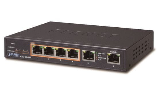 Planet GSD-604HP PoE stikalo 1Gbps, 6xTP, 4xPoE 802.3at/af 30W/55W, brez ventilatorja