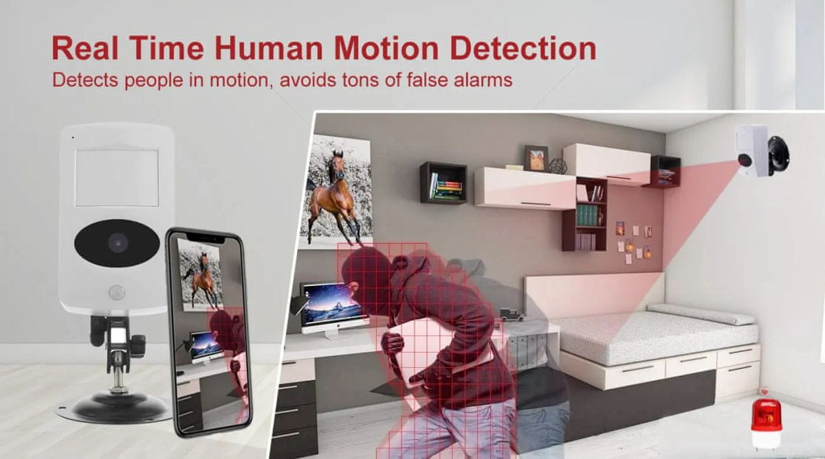 Ta kamera je primerna za nevsiljivo spremljanje prostorov. Zaradi zasnove, ki posnema tipalo PIR, ne vzbuja pozornosti in omogoča enostavno spremljanje prek mobilne aplikacije.