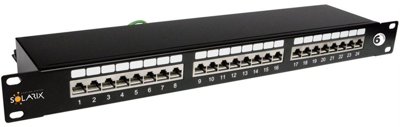 Solarix SX24–6-STP-BK je zaščitenapovezovalna plošča kategorije 6 (CAT6)za gradnjo obsežnih omrežij z zaščitenimi kabli (STP), ki ima24 priključkov RJ45 in dvojne priključke IDC 110/Krone. Ta plošča zlahka presega zahteve iz mednarodnih standardov ANSI/TIA 568, ISO/IEC 11801 in EN 50173 za ožičenje kategorije 6 in razreda E, vključno z vsemi najnovejšimi dodatki.