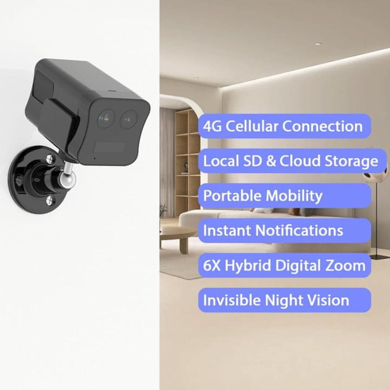 Iščeš zanesljivo varnostno napravo, ki združuje visoko zmogljivost in sodobne funkcije? Brezžična brezžična WiFi dvojna mini kamera D9-W je zasnovana za maksimalno varnost vašega doma ali pisarne. Z dvojnim objektivom s 6-kratno hibridno povečavo, visoko ločljivostjo 2K (2560 × 1440) in naprednim zaznavanjem gibanjaAI dobite kristalno jasne slike in natančna opozorila le ob pomembnih dogodkih. Kamera ima nočni vid do 10 metrov, senzor PIR z dometom do 8 metrov in ponuja povezljivost prek omrežja WiFi. Je idealna rešitev za varovanje podnevi in ponoči.