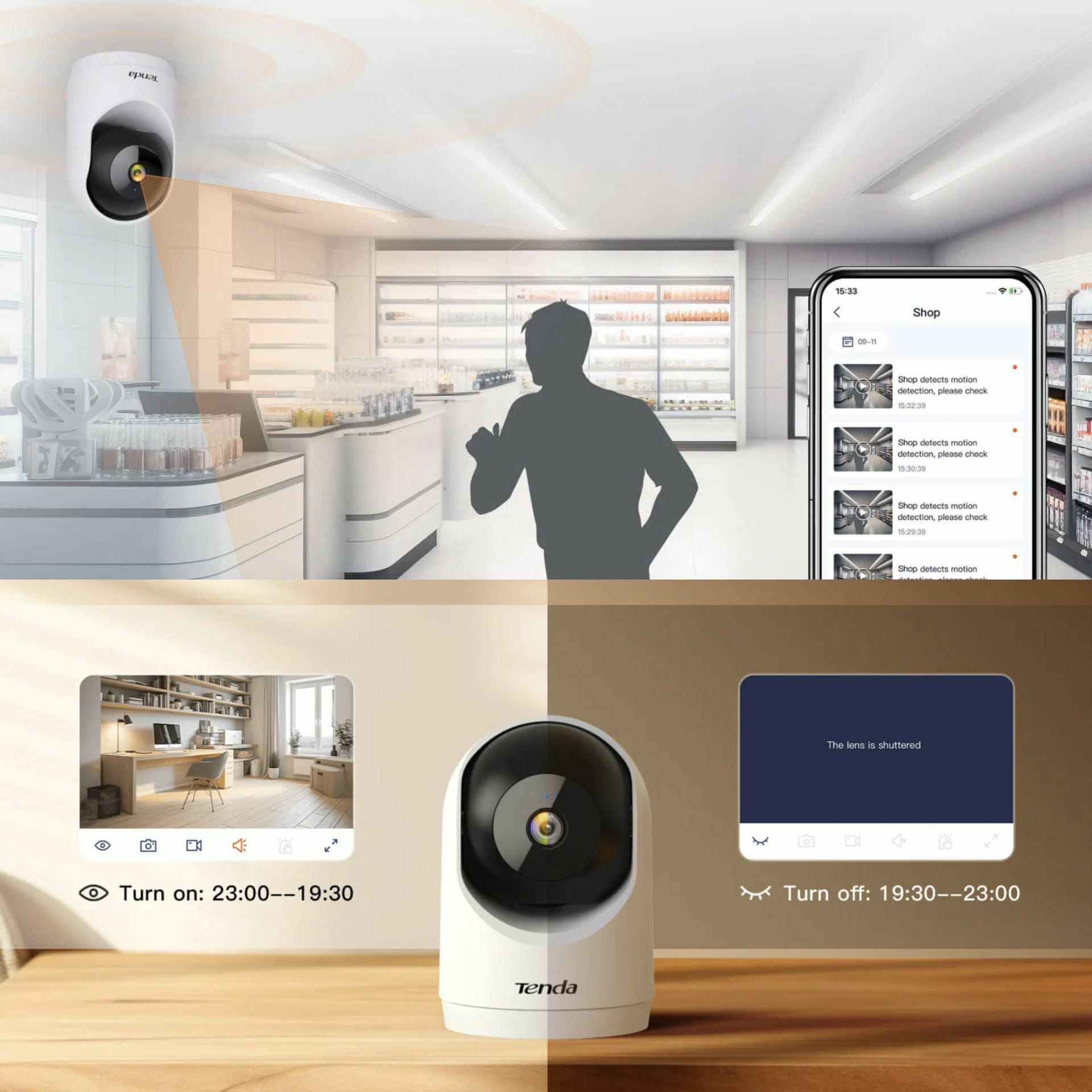 Tenda IP kamera 3.0MP brezžična PT RP3 omogoča 360° panoramsko pokritost, 3MP HD ločljivost, dvosmerni avdio ter sledenje gibanju. Podpira 0–355° pan in –15–55° tilt ter zaznavanje ljudi z obvestili v realnem času. Enostavna za uporabo in primerna je za nadzor domov, trgovin, pisarn in učilnic.