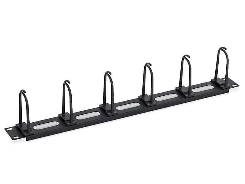Plošča za organizacijo kablov za 19" omaro, 6× plastični ročaji veliki, črna.