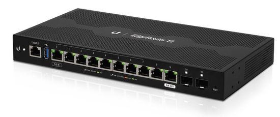 EdgeRouter 12 je visoko zmogljiv gigabitni usmerjevalnik s podporo za napajanje POE (POE IN na prvih vratih, POE OUT na zadnjih vratih). V primerjavi s prejšnjo generacijo usmerjevalnikov EdgeRouter zagotavlja večjo zmogljivost – ta model lahko obdela do 3,4 milijona paketov na sekundo (64-bajtni paketi).