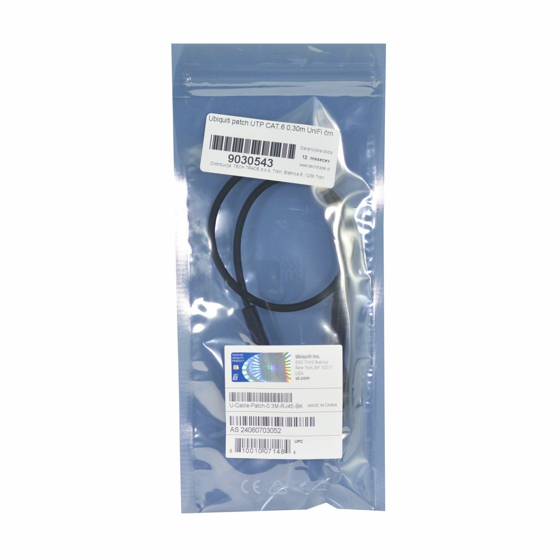 Visokokakovosten omrežni Ubiquiti patch UTP CAT.6 0.30m UniFi kabel črne barve, zasnovan za zanesljivo in hitro povezovanje omrežnih naprav. Kabel podpira standard CAT.6, kar omogoča velike hitrosti prenosa podatkov in minimalno izgubo signala. Izdelan je iz trpežnih materialov in ima upogljiva RJ45 konektorja, kar omogoča preprosto inštalacijo in organizacijo kablov v omejenih prostorih. Idealna izbira za povezovanje naprav ali drugih omrežnih komponent v domačih in poslovnih omrežjih.