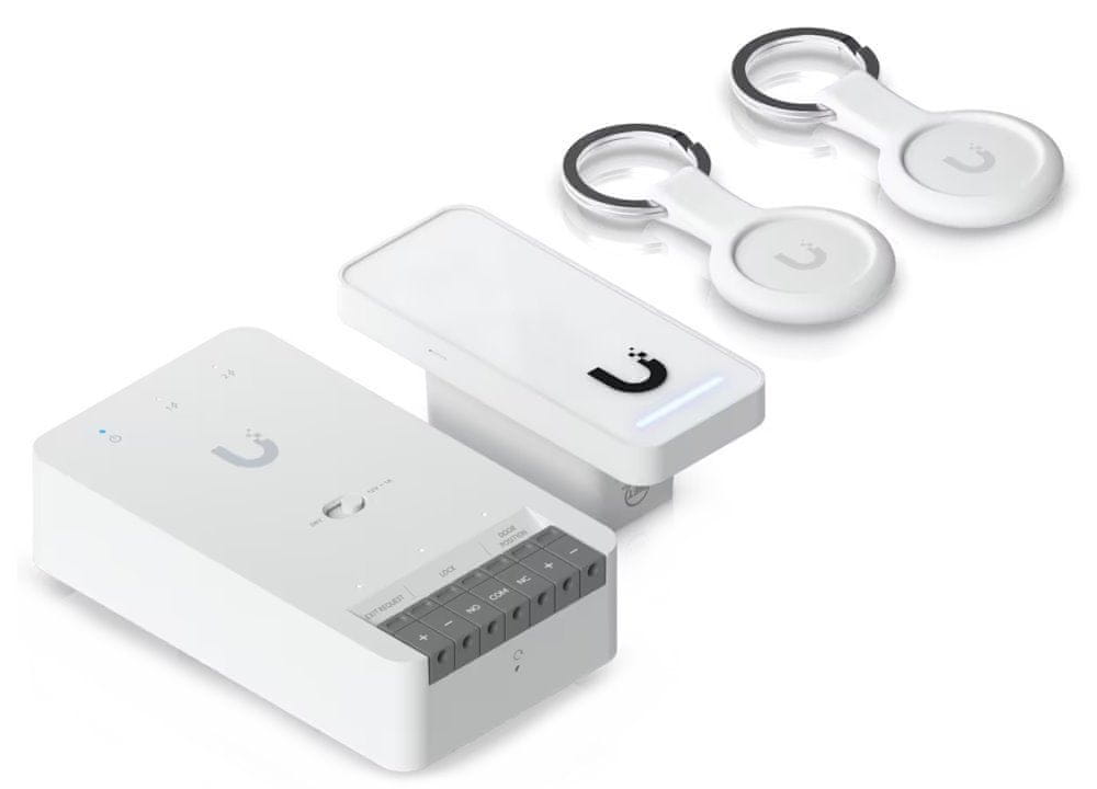 Vsebina začetnega kompleta: 1× UA-Hub-Door-Mini (vozlišče/krmilnik) 1× Ubiquiti UniFi Access Reader G3 (bralnik dostopa) 2× identifikacijski čip UA-Pocket (identifikacijska/pristopna kartica)