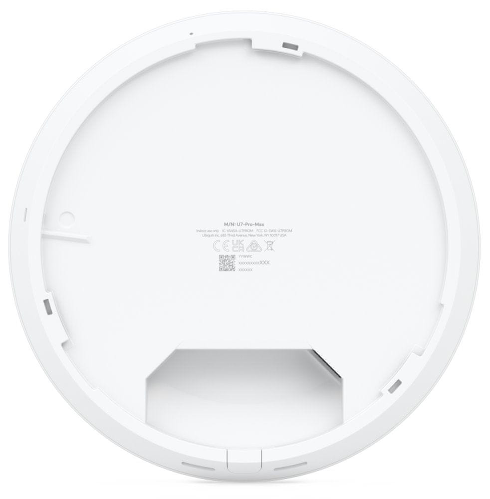 Ubiquiti UniFi U7 Pro Max je Wi-Fi 7 AP s podporo za frekvenčne pasove 2,4, 5 in 6 GHz ter hitrostjo prenosa do 5765 Mb/s za 6 GHz, 8648 Mb/s za 5 GHz in 688 Mb/s za 2,4 GHz. U7 Pro Max je zasnovan posebej za profesionalne in podjetniške namestitve ter je idealen za aplikacije, ki zahtevajo brezhibne storitve Wi-Fi v zahtevnih velikih okoljih z visoko gostoto prometa. Podpira napajanje PoE+.
