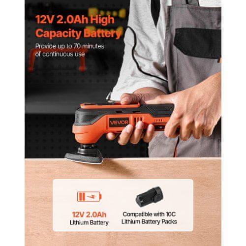 VEVOR Brezžično nihajno večnamensko orodje 12V 270x100x55 mm 6 hitrosti