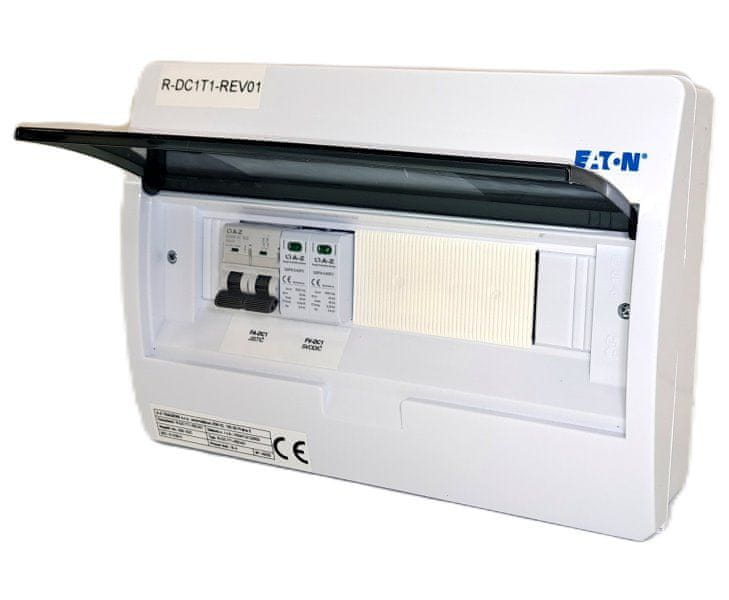Razdelilna omarica za enosmerni tok, zasnovana za stensko montažo, IP40/20, ki služi kot vhodna razdelilna omarica iz PV-panelov (do inverterja) pri uporabi tehnologije ogrevanja vode ali PV-nitri do 500 V.