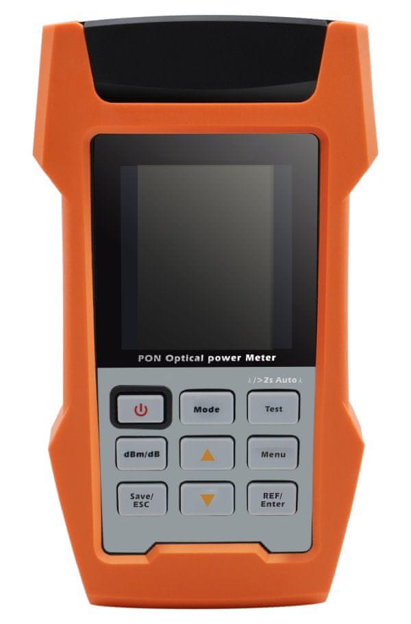Ročni merilnik optične moči PON z LCD-zaslonom. Zasnovan je za valovne dolžine 1310 nm, 1490 nm in 1550 nm. Prepustno dušenje do 1,5 dB. Napajanje s 3× baterijo AA ali adapterjem. Priključek SC/PC.