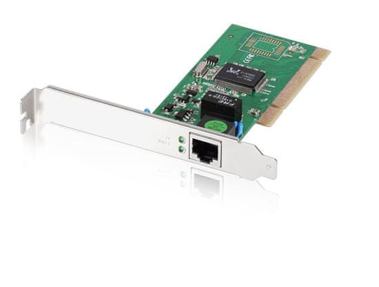 Gigabitna PCI mrežna kartica nudi visoko zmogljivost v omrežni povezavi vašega omrežja. Podpira 32-bit 33/66MHz PCI Local Bus Master s hitrim delovanjem (Rev. 2.1/2.2/2.3) Primerna je tako za pisarniško kot domačo uporabo.